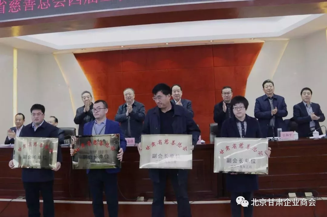 2019年3月15日,甘肃省慈善总会四届三次理事会暨全省慈善工作座谈会在兰州召开。甘肃省慈善总会会长朱志良,常务副会长梁国安、肖庆平,副会长张和平、副会长兼秘书长张忠健、副秘书长兼办公室主任贺占明以及常务理事、理事以及省直相关部门、各市州慈善协会会长、秘书长,部分社会组织、企业代表,爱心人士,新闻媒体记者等116人参加会议。会上朱志良会长作了工作报告,审议并通过了2018年甘肃省慈善总会财务报告,表决通过了增补的理事会理事、荣誉会长、副会长单位,北京甘肃企业商会会长王金生当选为了第四届理事会荣誉会长,北京甘肃企业商会当选为副会长单位;召开了全省慈善工作座谈会,7个市县慈善会作了大会经验交流,会议讨论研究了今年全省慈善工作思路和打算。